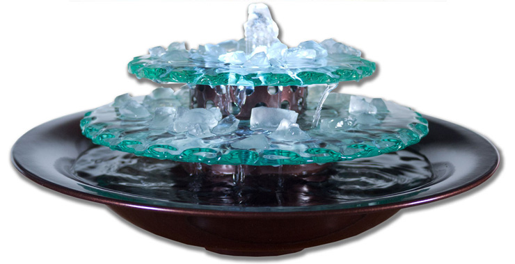 We offers a premium selection of indoor glass fountains and glass waterfalls. Each of our indoor water features is constructed from the finest materials available, and we use all top quality components to ensure quality. Choose from several floor-standing and wall-mounted designs, and personalize your glass waterfall with a company logo or business name.